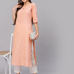 Self Woven Striped Cotton Blend Straight Kurta (Pre-Order)
