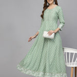 Green Printed & Embroidered Rayon Anarkali Kurta (Pre-Order)