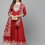 Printed & Embroidered Cotton Anarkali Kurta With Dupatta (Pre-Order)