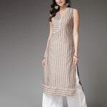 Woven Striped Cotton Blend Straight Kurta (Pre-Order)