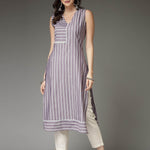 Woven Striped Cotton Blend Straight Kurta (Pre-Order)
