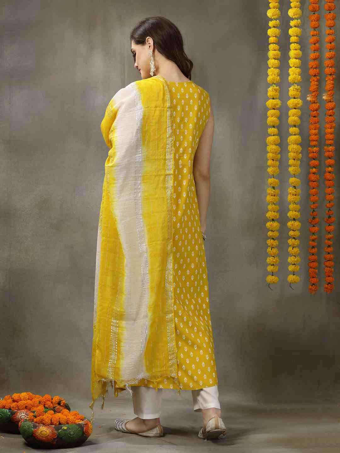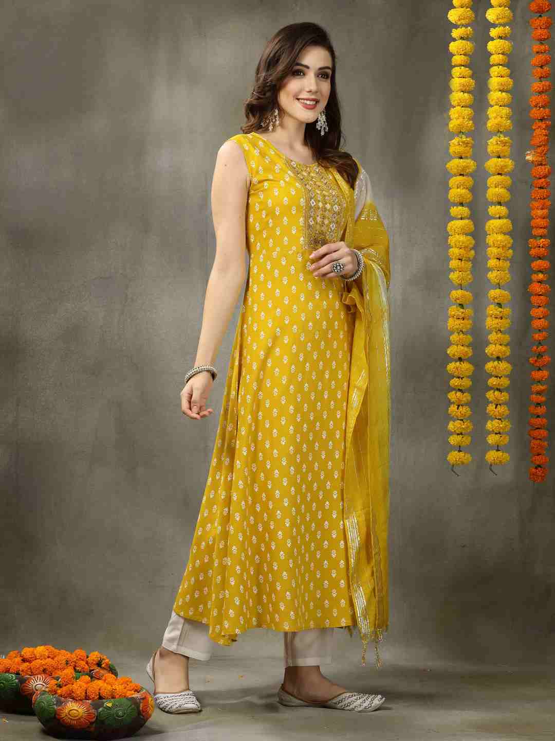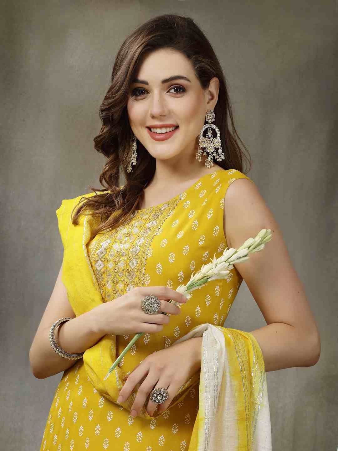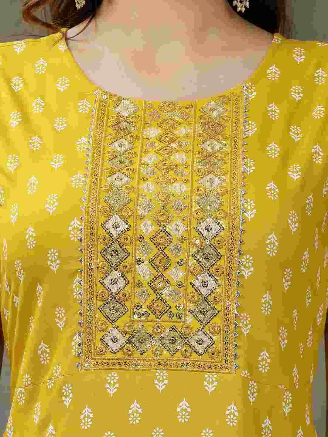 Printed & Embroidered Rayon A-Line Kurta with Dupatta (Pre-Order)