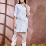 Woven Striped Cotton Blend Straight Kurta (Pre-Order)