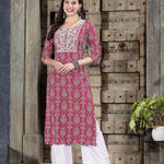 Bandhej Printed & Embroidered Rayon Straight Kurta (Pre-Order)