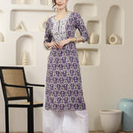 Purple Printed & Embroidered Rayon Straight Chicken Kurta (Pre-Order)