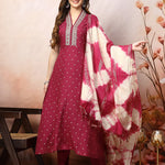 Wine Khari Printed & Embroidered Rayon A-Line Kurta Dupatta Set (Pre-Order)