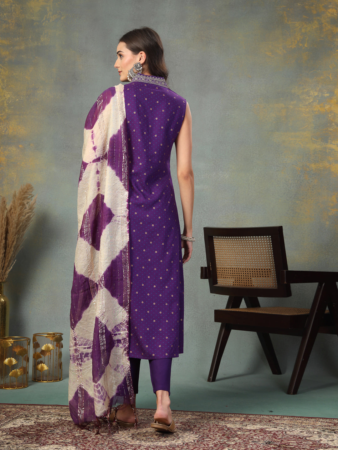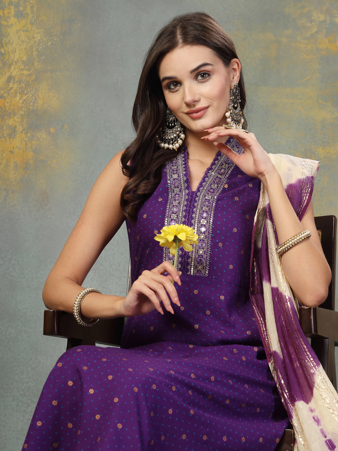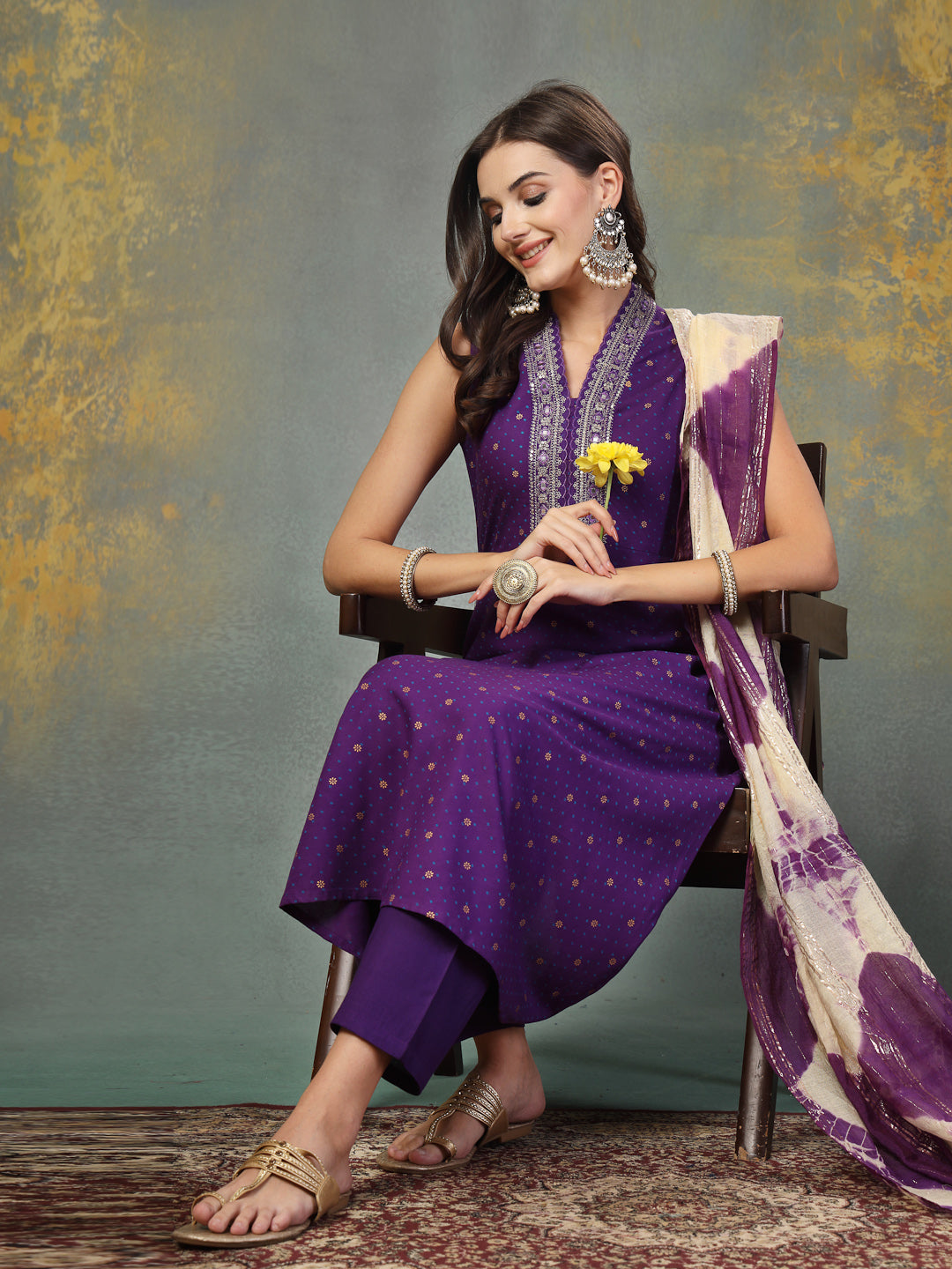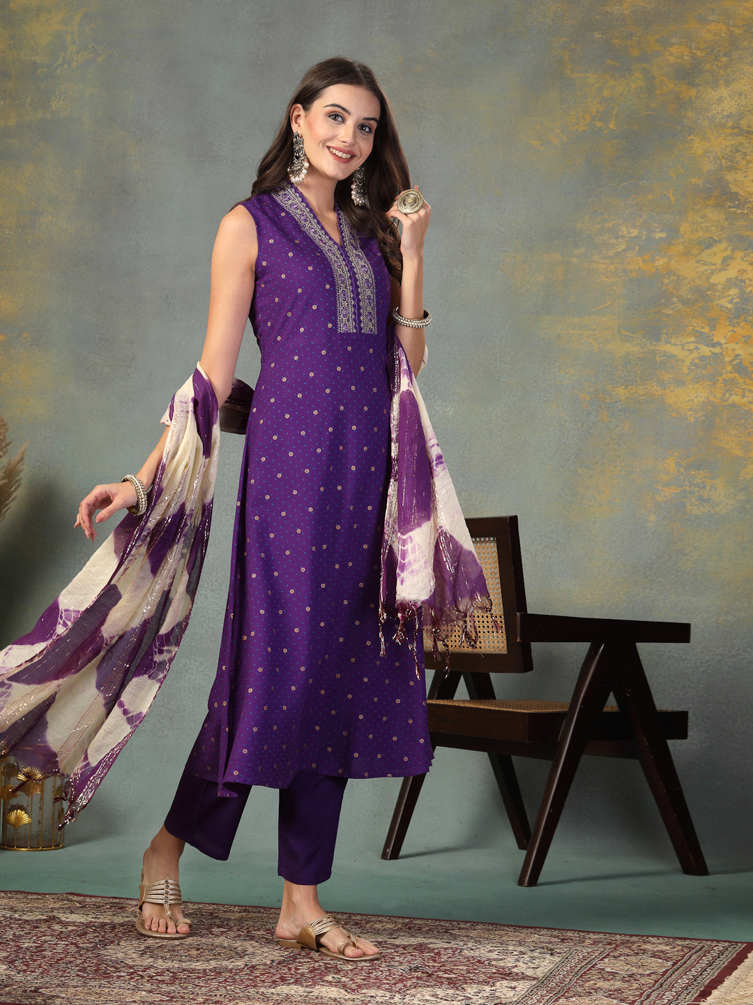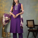 Violet Khari Printed & Embroidered Rayon A-Line Kurta Dupatta Set (Pre-Order)