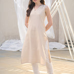 Beige Solid & Embroidered Cotton Blend Straight Kurta (Pre-Order)