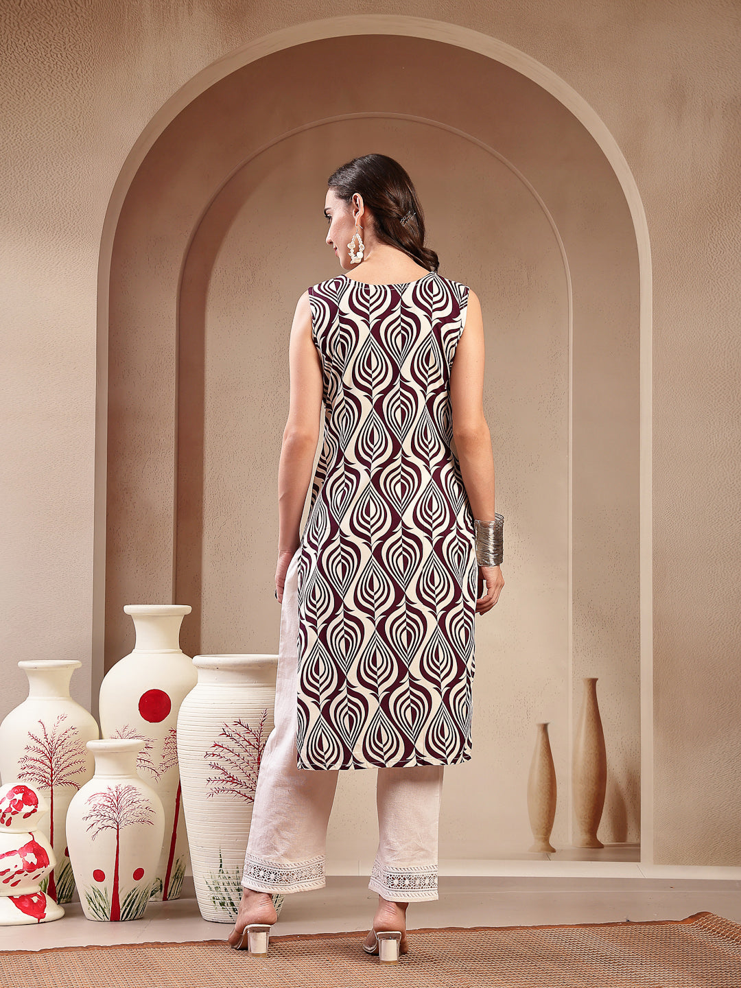 Wine Printed Rayon Straight Kurta (Pre-Order)