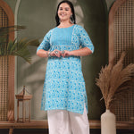 Plus Size Printed Cotton Slub Straight Kurta (Pre-Order)