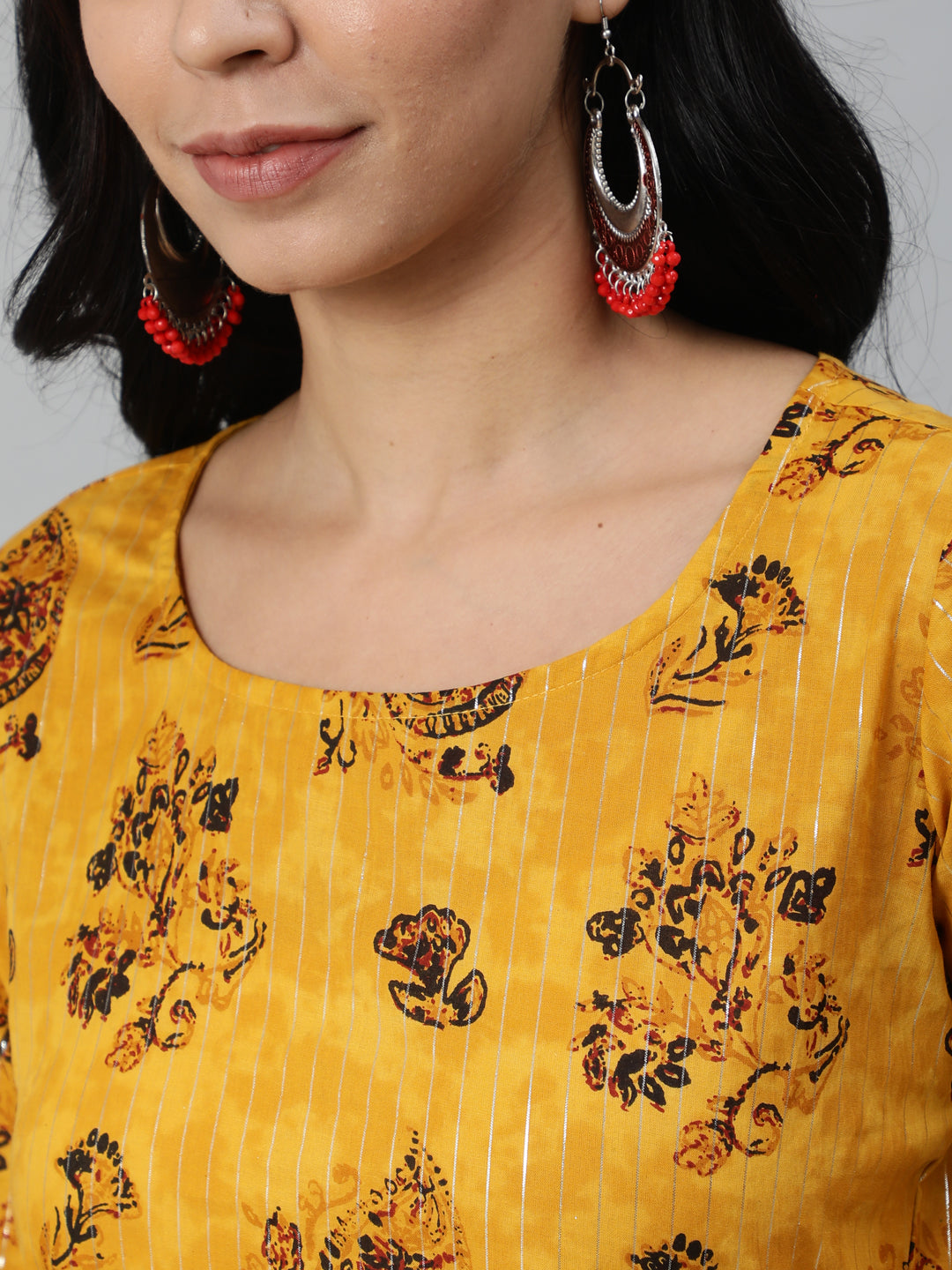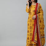 Women Yellow Printed Straight Kurta With Plazo & Dupatta