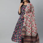 Women Blue Printed Flared Kurta With Trouser & Dupatta