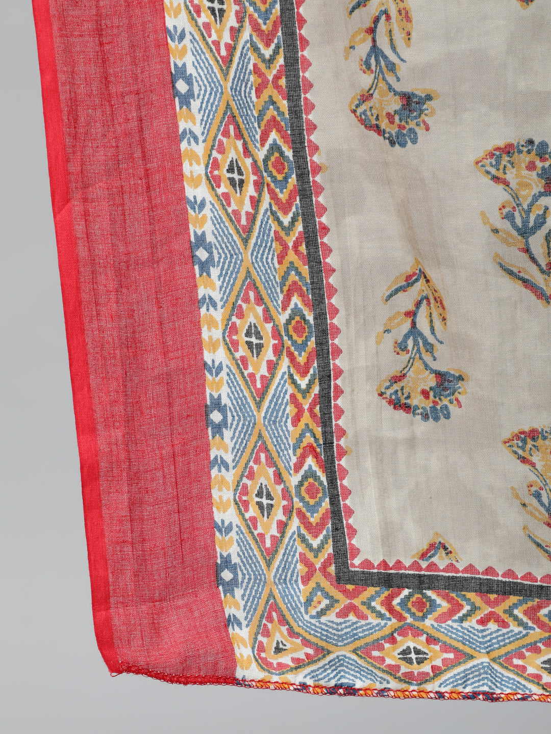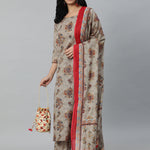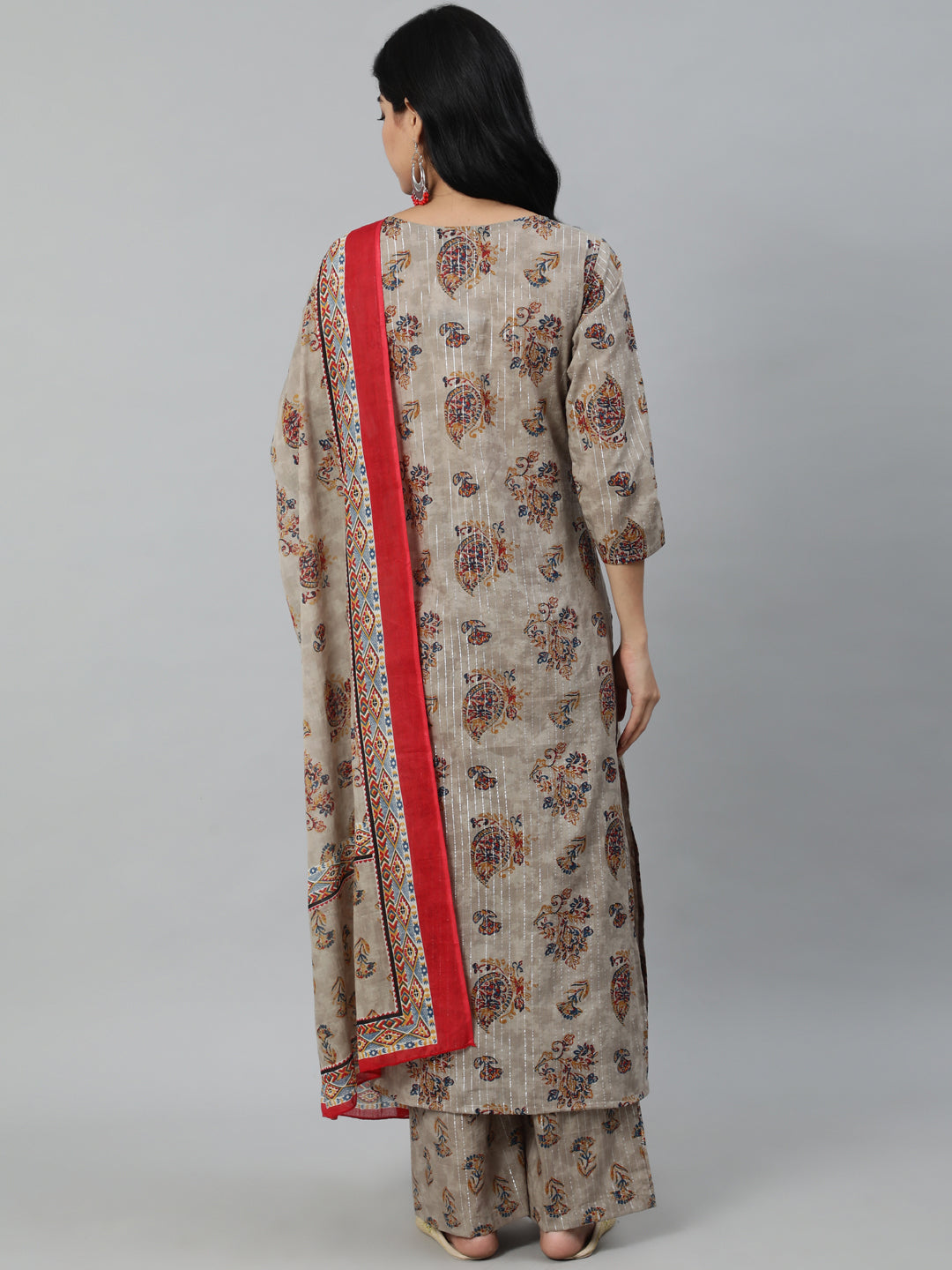 Women Grey Printed Straight Kurta With Plazo & Dupatta