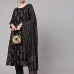 Black Ethnic Printed Kurta With Trouser And Dupatta