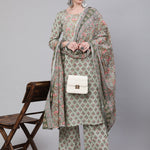 Green Printed Straight Kurta With Palazzo & Dupatta