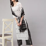 Off White Printed Straight Kurta With Palazzo & Dupatta
