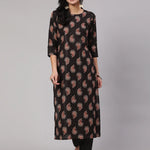Black Ethnic Printed Straight Kurta With Trouser