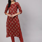 Maroon Ethnic Printed Straight Kurta And Palazzo