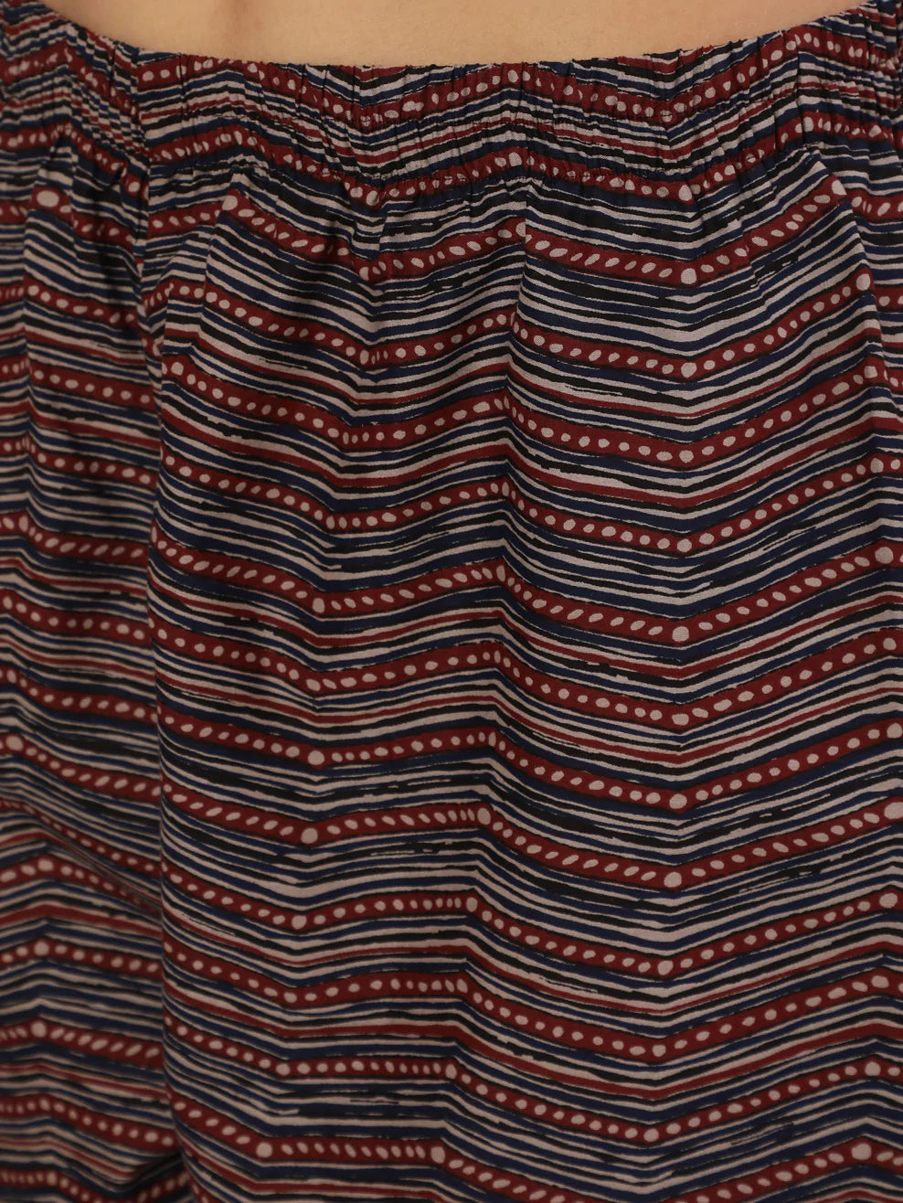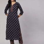 Navy Blue Ethnic Printed Straight Kurta With Trouser