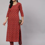 Maroon Ethnic Printed Straight Kurta And Palazzo