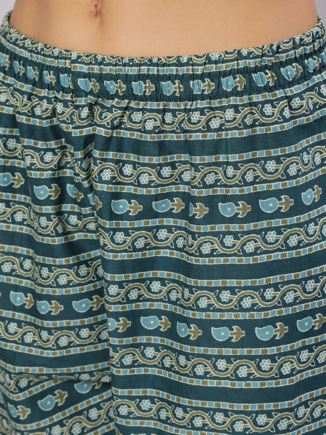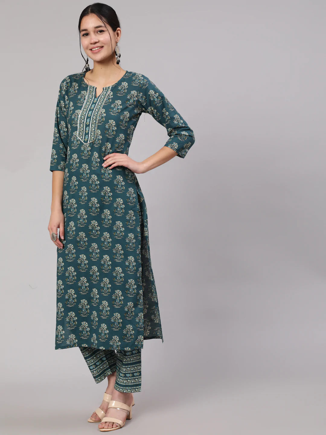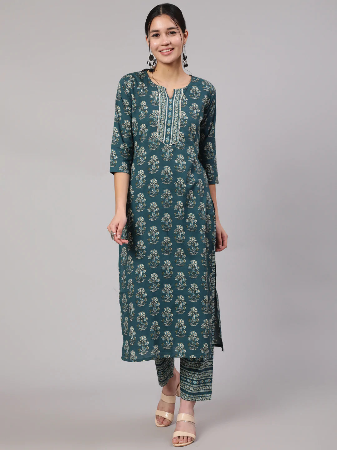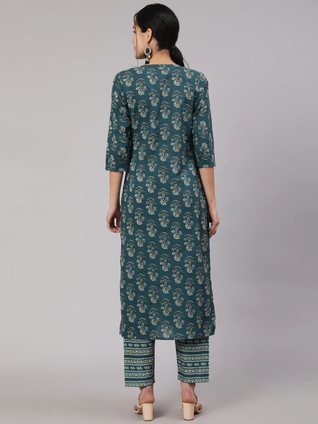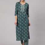 Teal Blue Printed Straight Kurta With Trouser