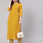 Mustard Printed Straight Kurta With Trouser