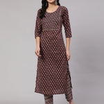 Purple Printed Straight Kurta With Trouser
