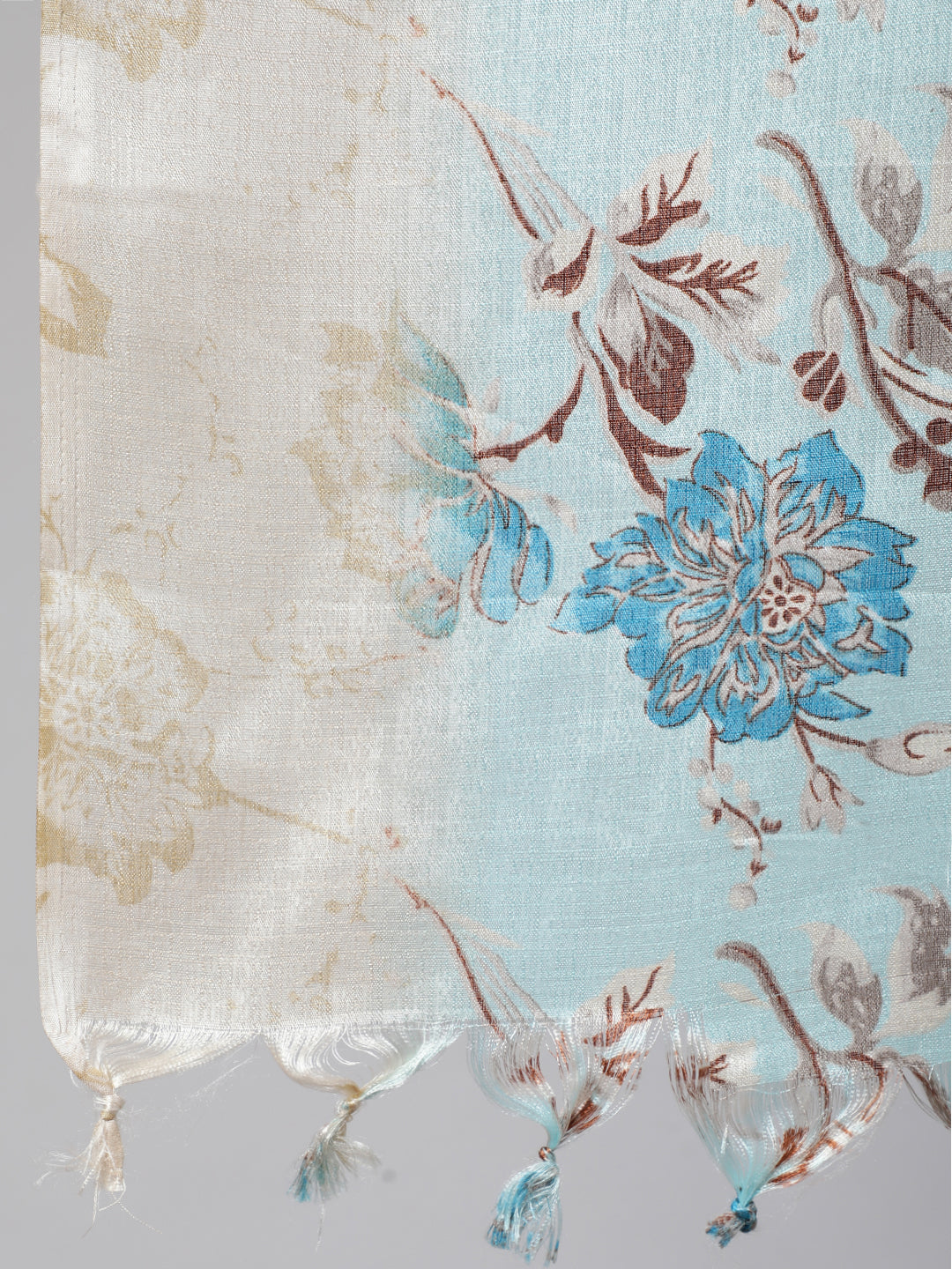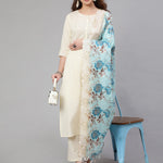 Cream Straight Solid Kurta With Trouser And Art Silk Dupatta