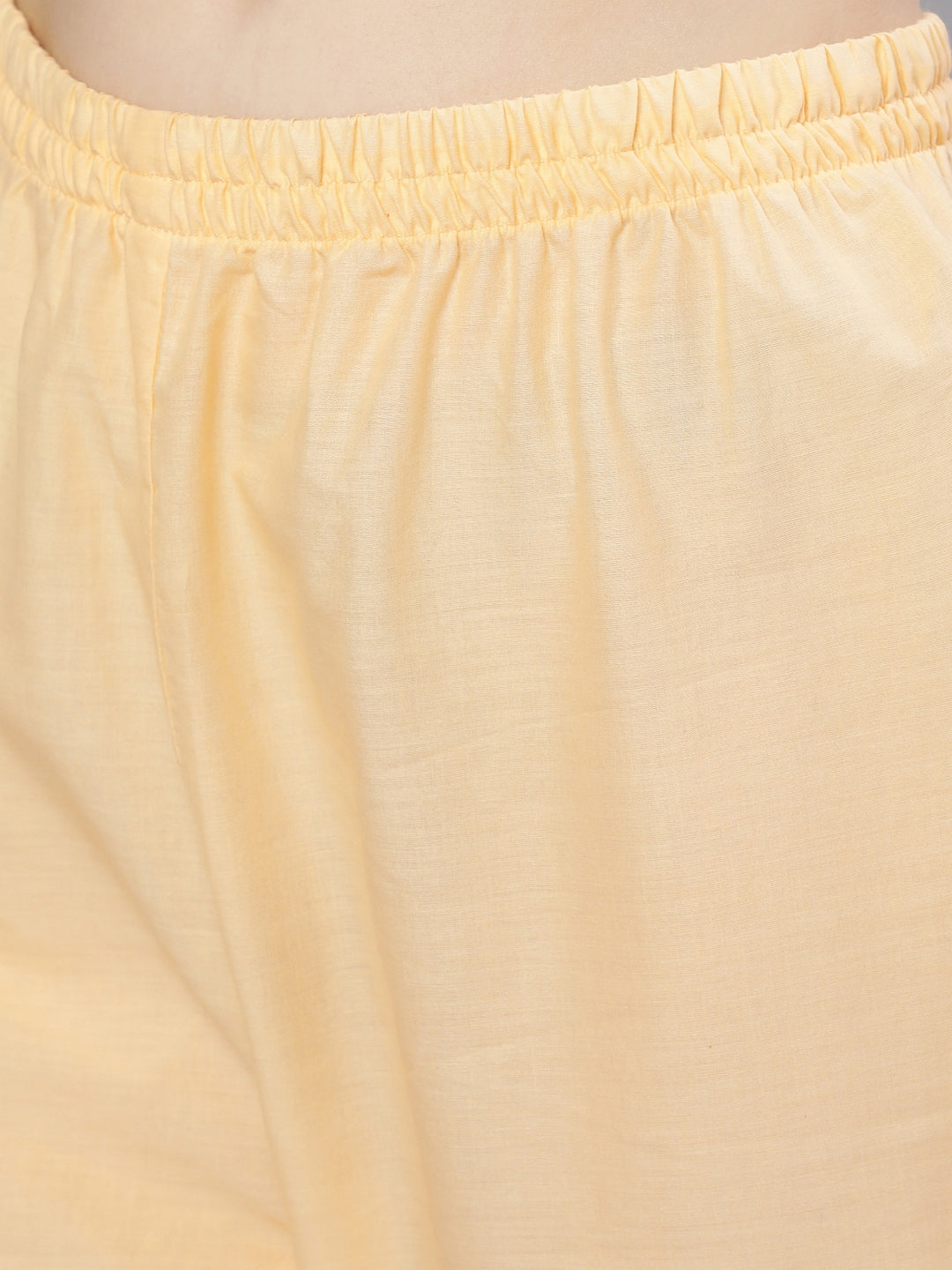 Cream Straight Solid Kurta With Trouser And Art Silk Dupatta
