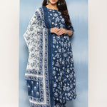 Blue Floral Printed Anarkali Kurta With Trouser And Dupatta