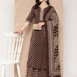 Brown Ethnic Printed Straight Kurta With Skirt And Dupatta