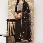 Brown Embroidered Straight Kurta With Palazzo And Dupatta