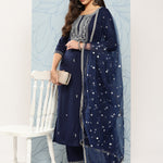 Navy Blue Embroidered Straight Kurta With Palazzo And Dupatta