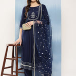 Navy Blue Embroidered Anarkali Kurta With Trouser And Dupatta