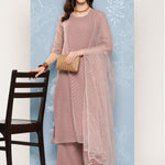 Mauve Foil Printed Straight Kurta With Palazzo And Net Dupatta