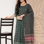 Green Ethnic Printed Anarkali Kurta With Trouser And Dupatta