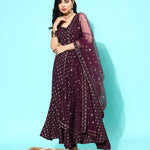 Burgundy Ethnic Printed Sleeveless Kurta With Trouser And Dupatta