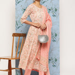 Pink Ethnic Printed Kurta With Palazzo And Dupatta