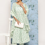 Green Printed Anarkali Kurta With Trouser And Dupatta