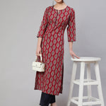 Maroon Ethnic Printed Straight Kurta With Trouser