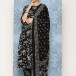 Black Floral Printed Flared Kurta With Trouser And Dupatta