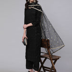 Black Embroidered Straight Kurta With Palazzo And Net Dupatta