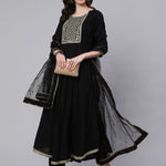 Black Embroidered Flared Kurta With Trouser And Net Dupatta