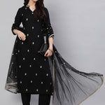 Black Embroidered Straight Kurta With Trouser And Net Dupatta