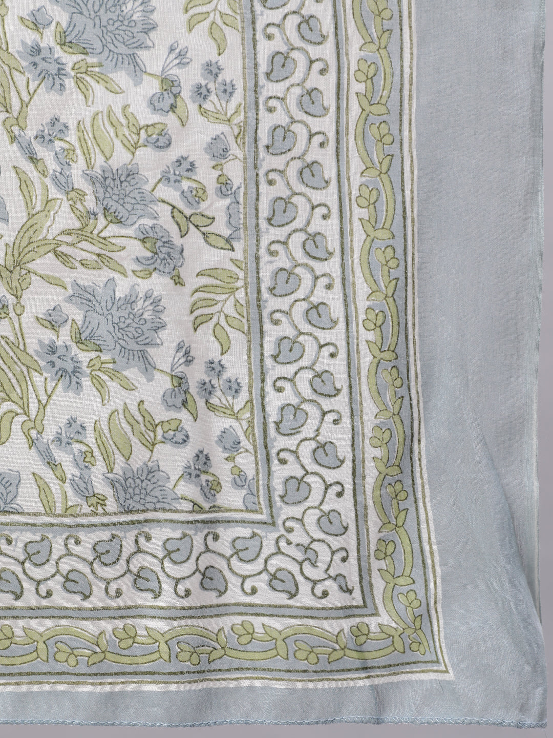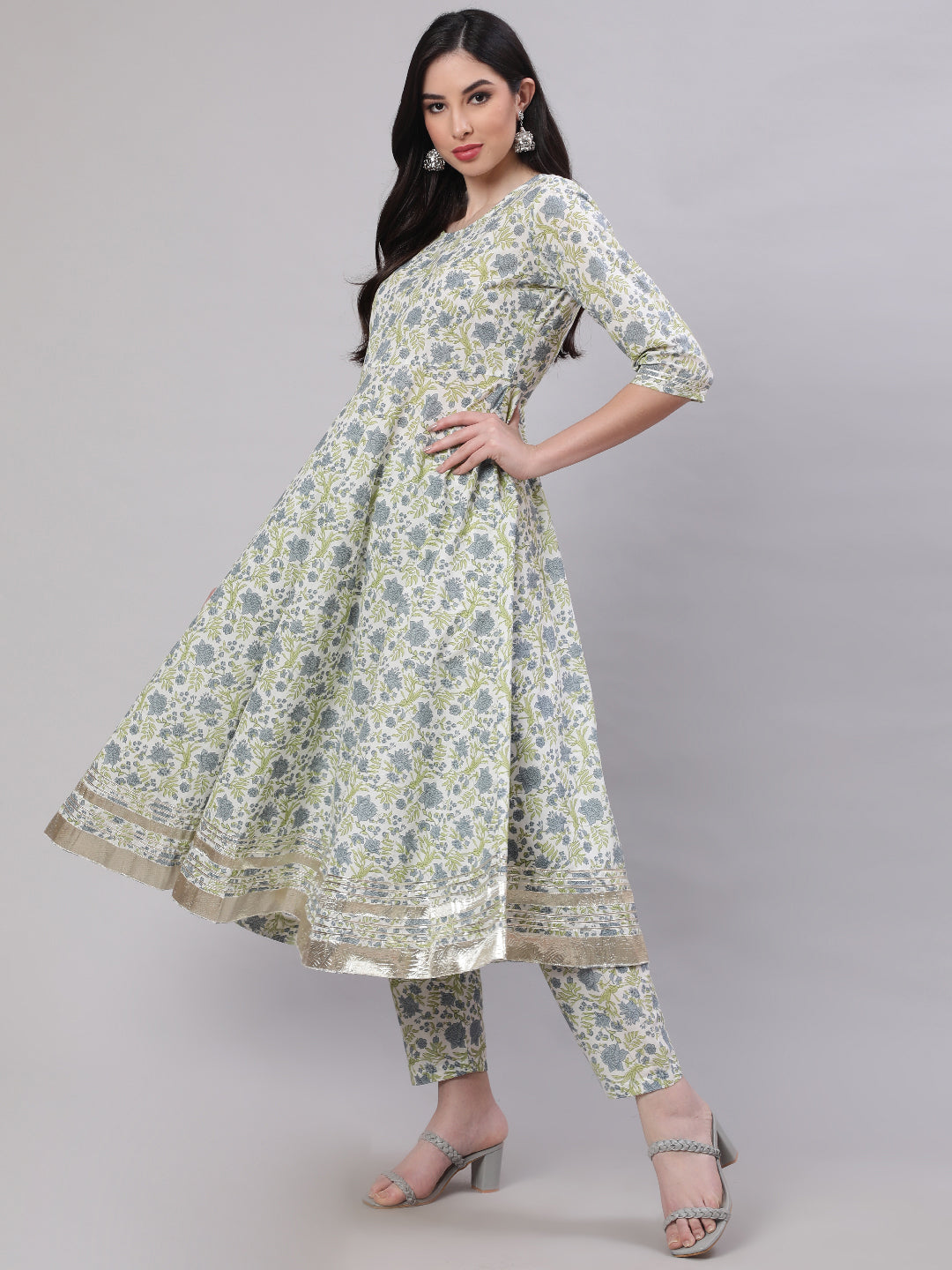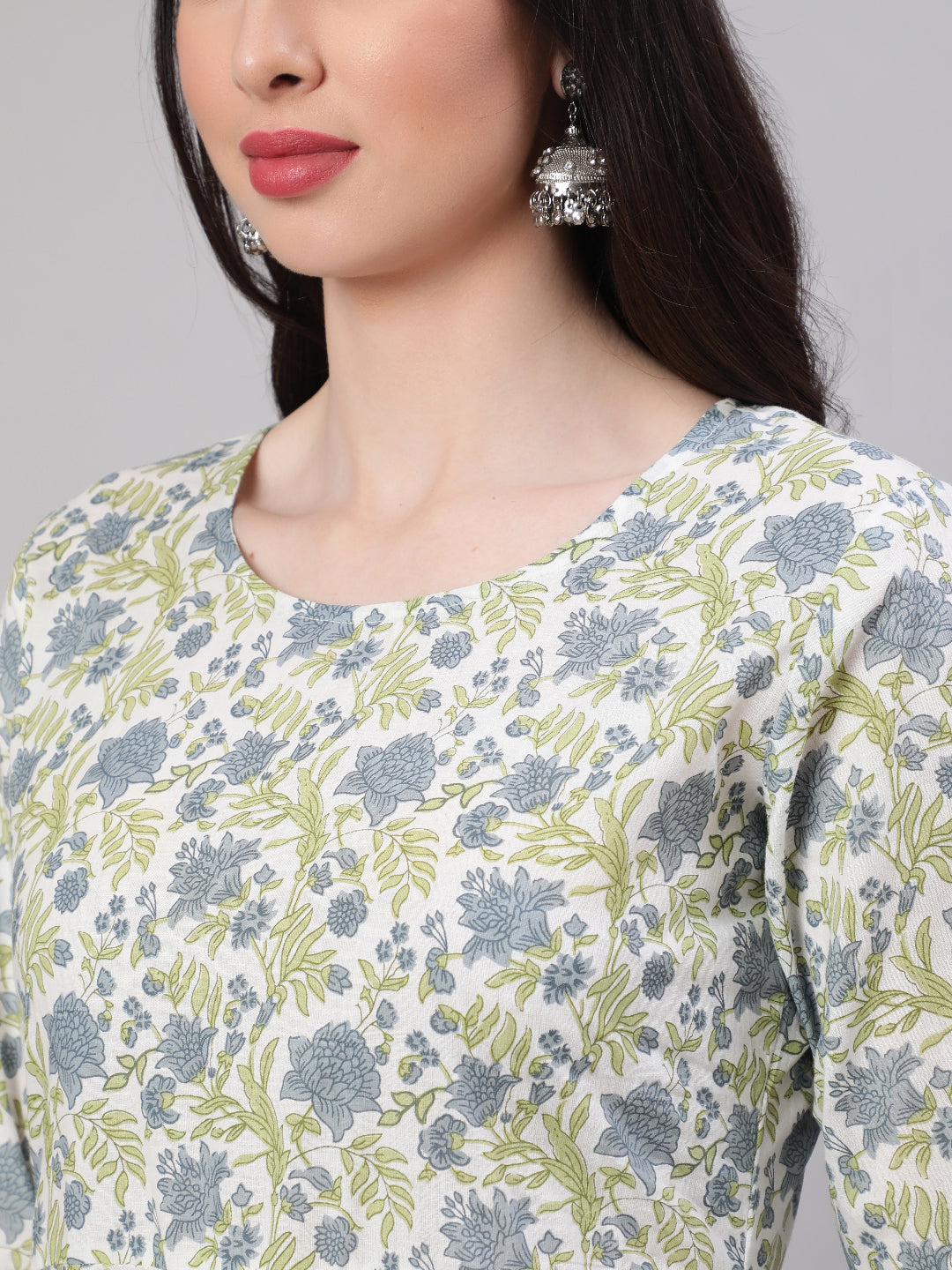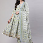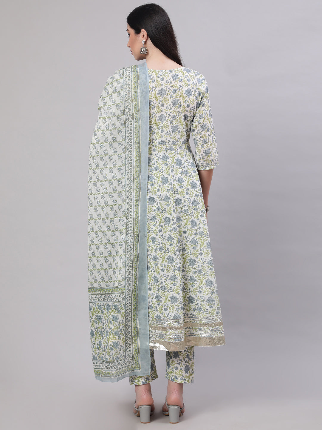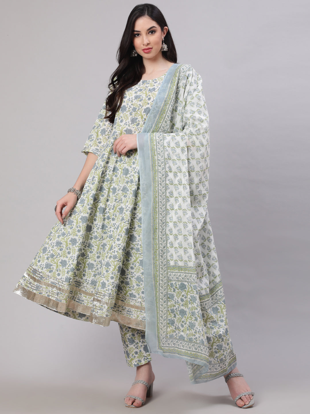 Women Off-White Floral Printed Flared Kurta With Trouser And Dupatta