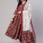 Women Maroon Floral Printed Flared Kurta With Trouser And Dupatta