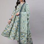 Women Grey Floral Printed Flared Kurta With Trouser And Dupatta