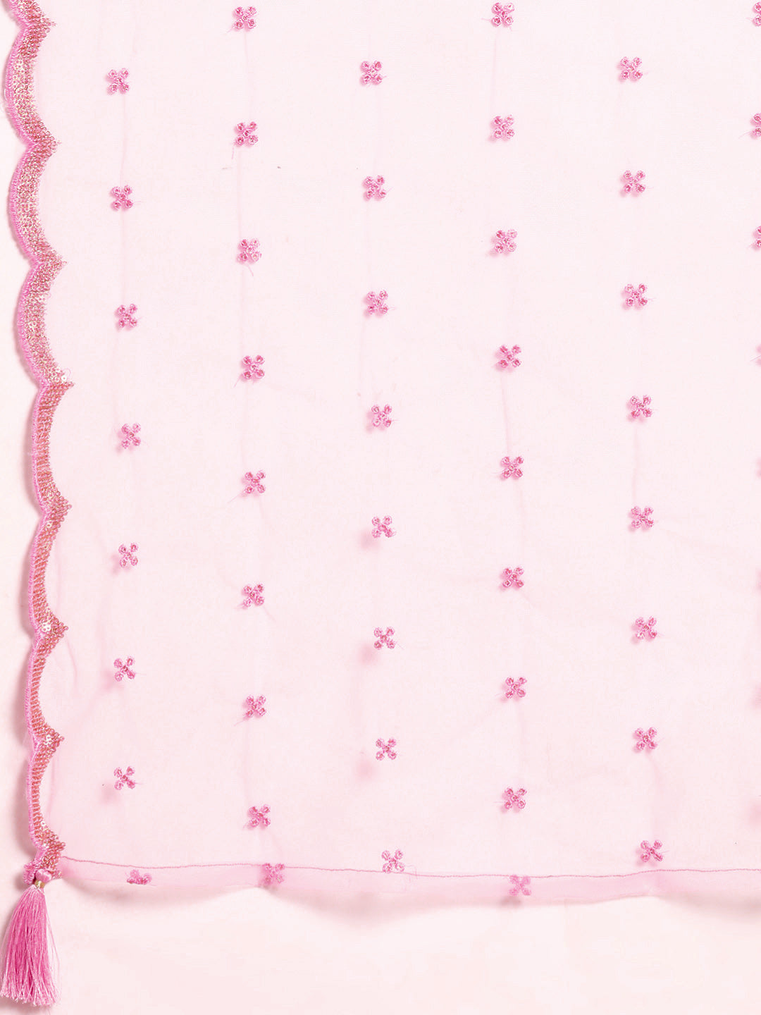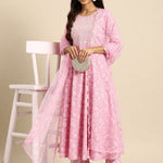Women Pink Embroidered Anarkali Kurta With Trouser And Dupatta