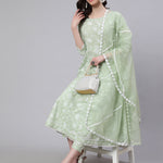 Women Green Floral Printed Anarkali Kurta With Trouser And Dupatta