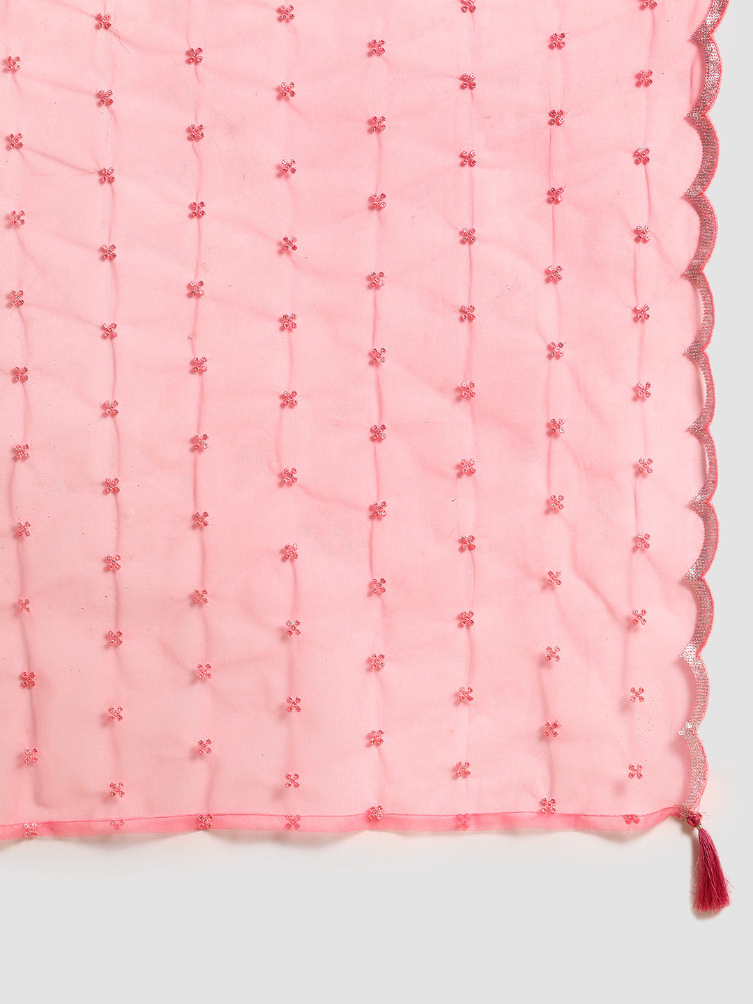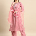 Mauve Embroidered Straight Kurta With Palazzo And Net Dupatta